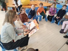 Dzieci wysłuchały głośnego czytania bajek, rozmawiały o ulubionych książkach i bajkowych bohaterach, a także wzięły udział w pogadance o tym, jak dbać o książki. Nie zabrakło również zagadek i dobrej zabawy.