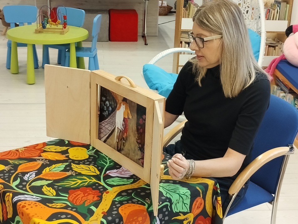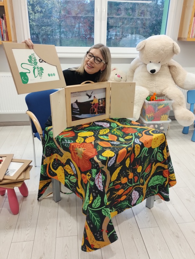 Jest to technika czytania i prezentacji, wywodząca się z Japonii. Ilustrowane karty wsuwane do drewnianej, otwartej skrzyni pełnią rolę sceny. Dzieci Miejski Zespół Szkół w Radziejowie z wielkim zainteresowaniem i zachwytem wysłuchały pięknych opowieści prezentowanych w wyjątkowej, papierowej scenie. Magiczne ilustracje sprawiły, że wszyscy przenieśli się w świat bajki.