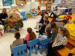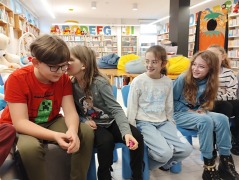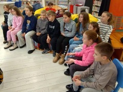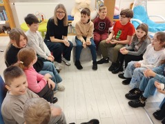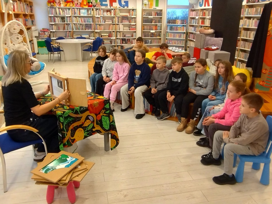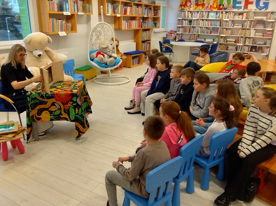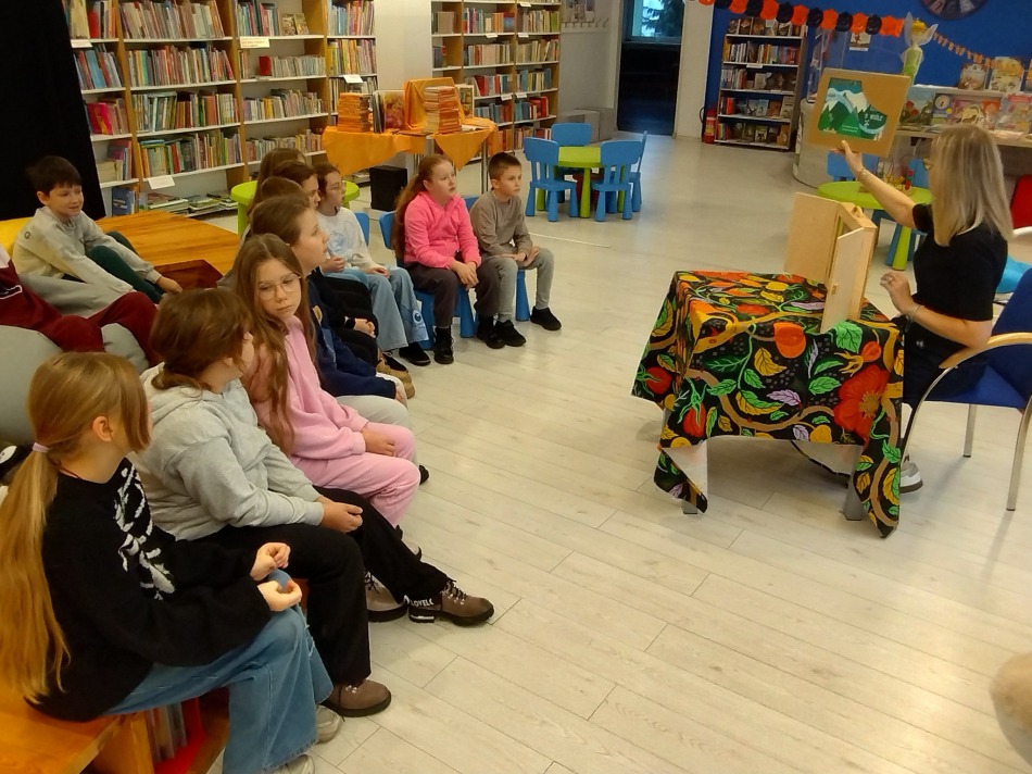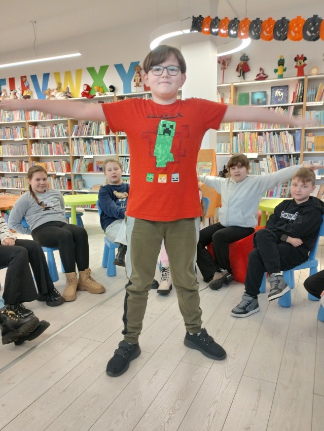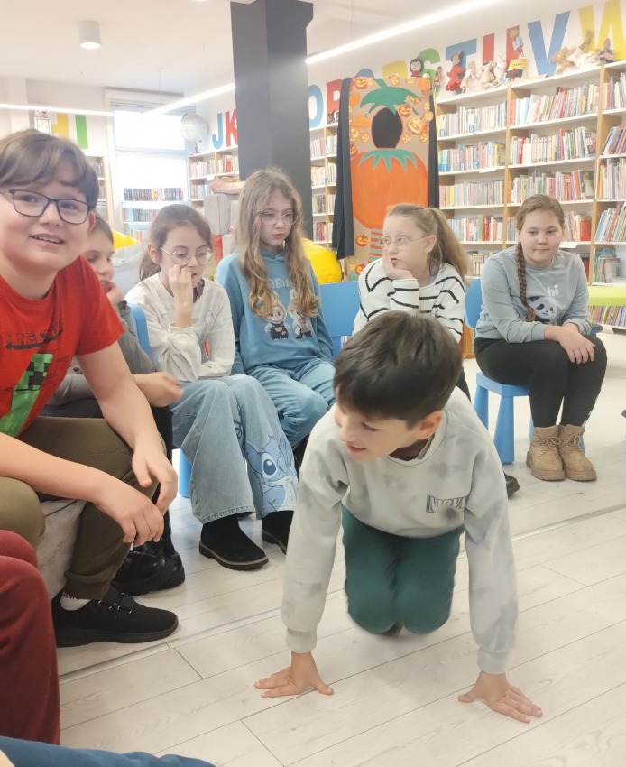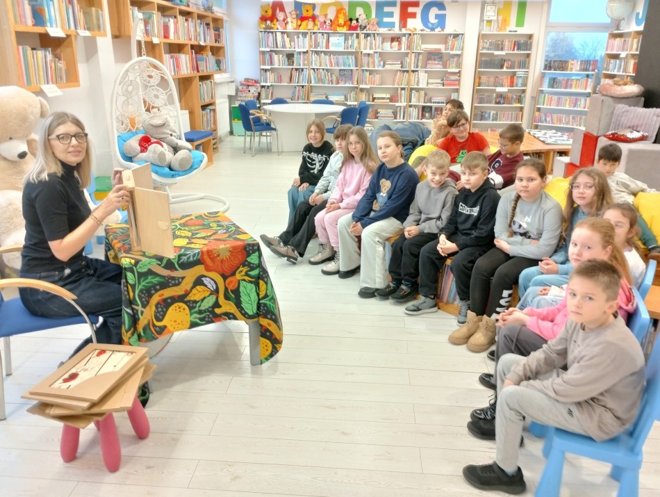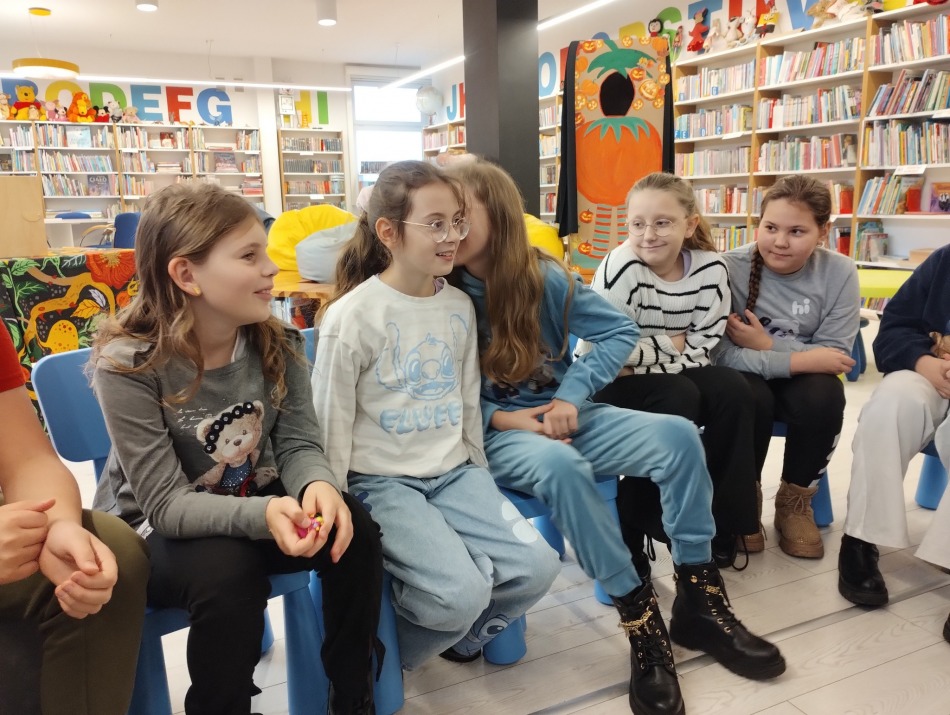 Po przedstawieniu czekały na dzieci wesołe zabawy – kalambury oraz głuchy telefon, które wywołały mnóstwo śmiechu i radości. To było pełne emocji i uśmiechu spotkanie, które na długo pozostanie w pamięci najmłodszych.
