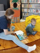Wśród książek i zabawek nasi milusińscy spędzili radosny czas w bibliotece. To wyjątkowa chwila na wspólne czytanie, rozmowy i zabawę – moment, który łączy dzieci i rodziców.