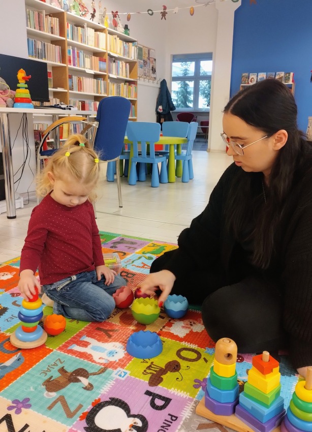 Zapraszamy najmłodszych i ich mamy na środowe spotkania w bibliotece — to idealny moment na pierwszy kontakt z książką, rozmowy, zabawę i spędzenie czasu w ciepłej, przyjaznej atmosferze.