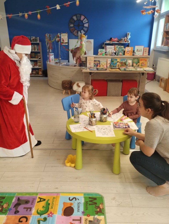 Dzieci miały okazję zrobić sobie mikołajkowe zdjęcia, wspólnie poczytać świąteczne książeczki, a całą przestrzeń wypełniły: śmiech, zabawa i ciepła, przedświąteczna atmosfera.