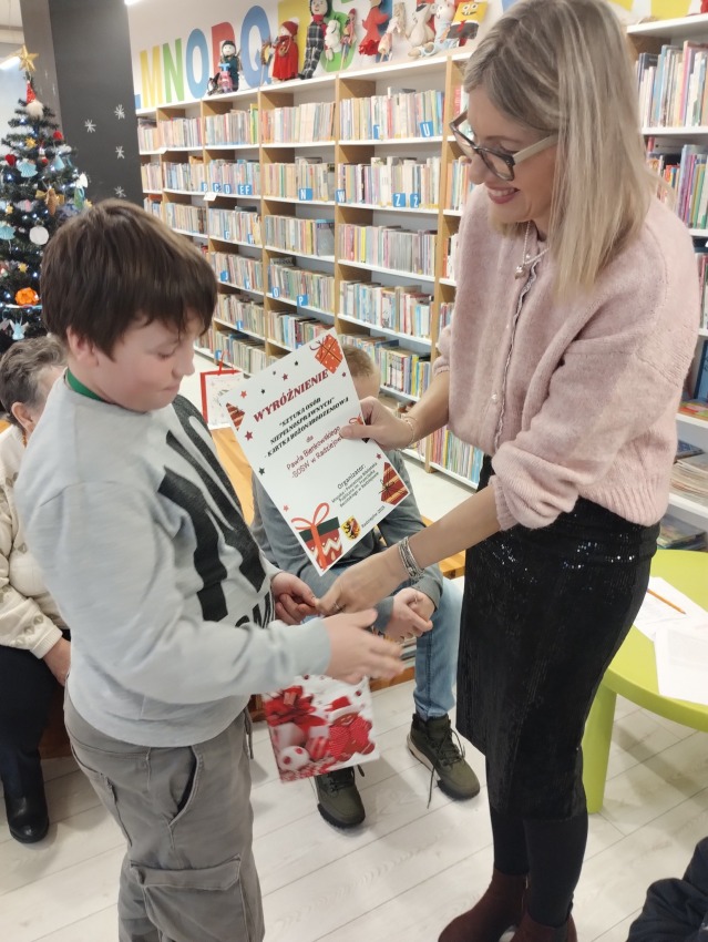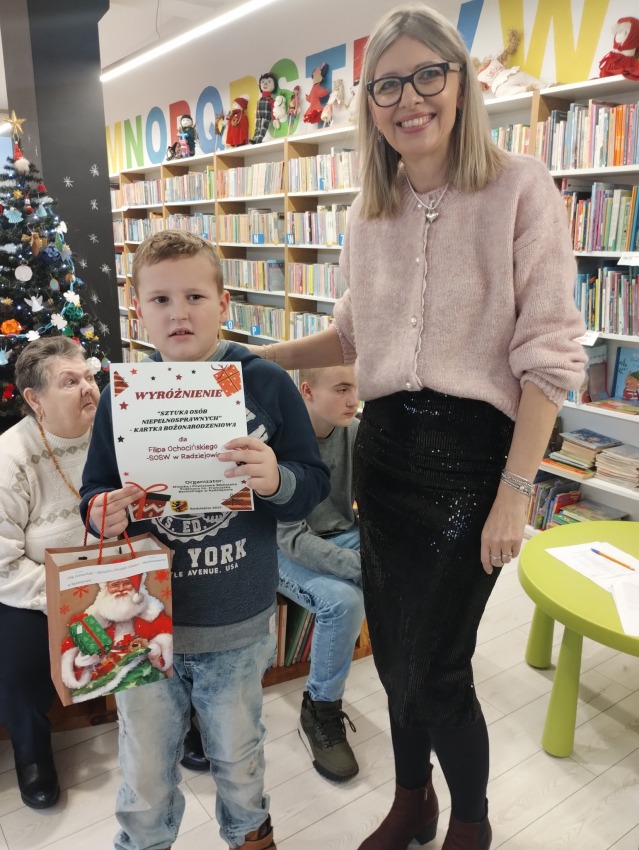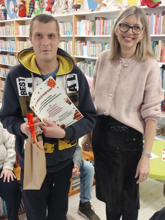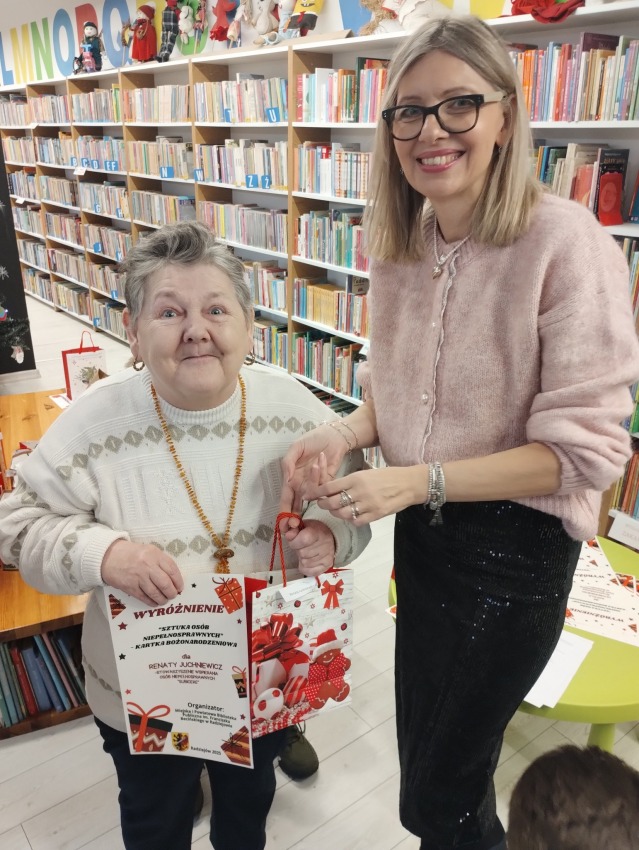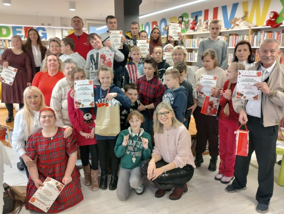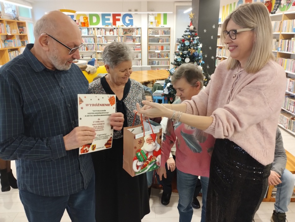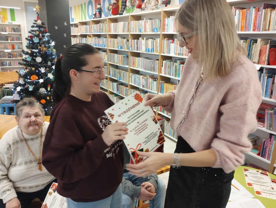 Uroczyste wręczenie nagród i dyplomów w Powiatowym Konkursie „Sztuka Osób Niepełnosprawnych – Kartka Bożonarodzeniowa”.