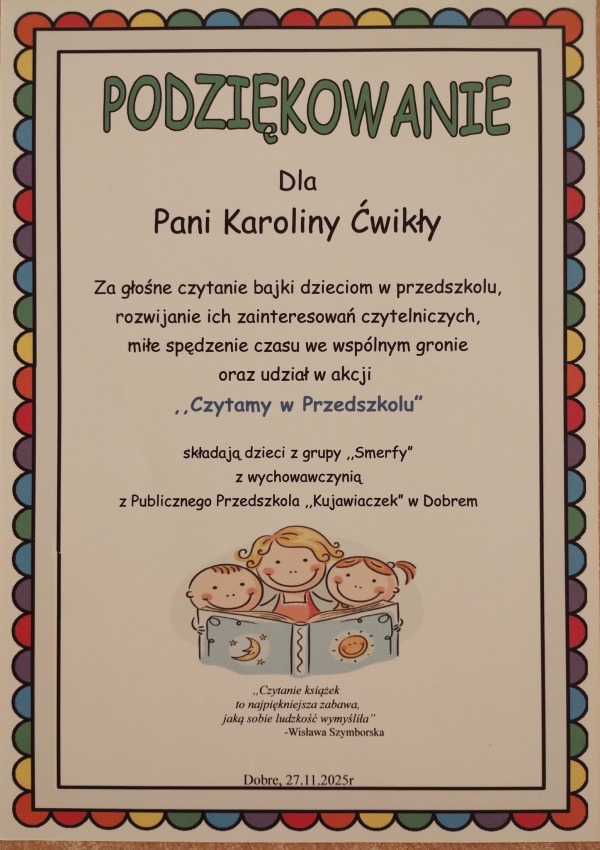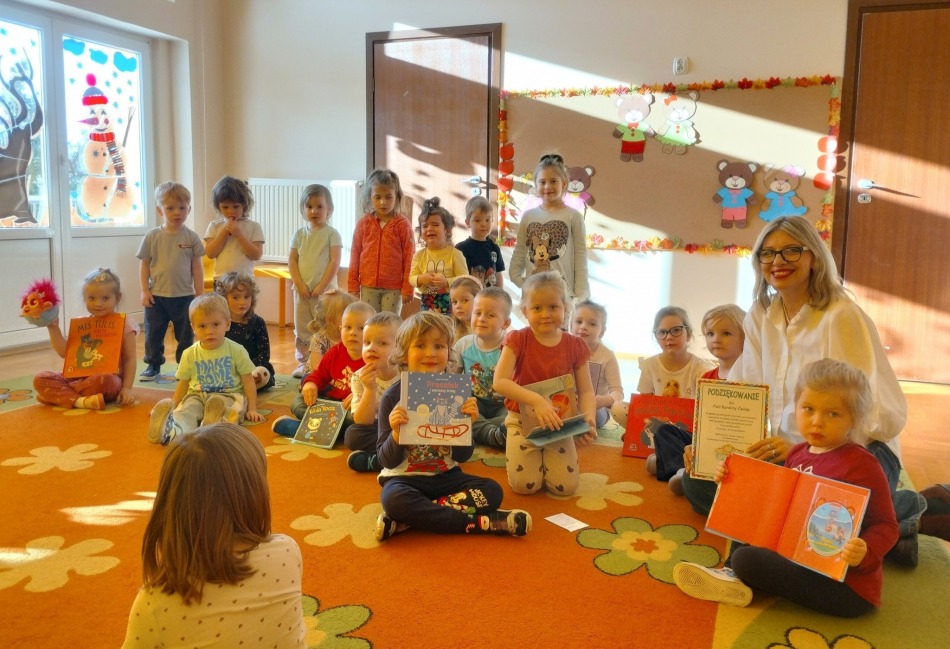 Gościnne czytanie w Przedszkolu „Kujawiaczek” w Dobrem.