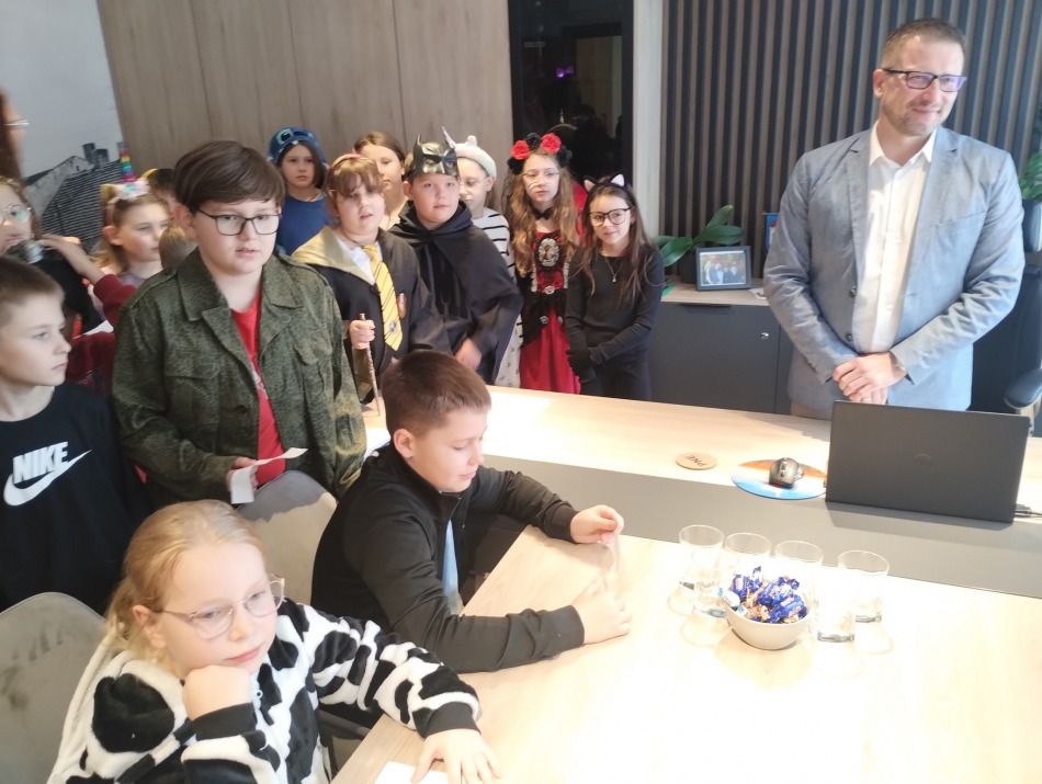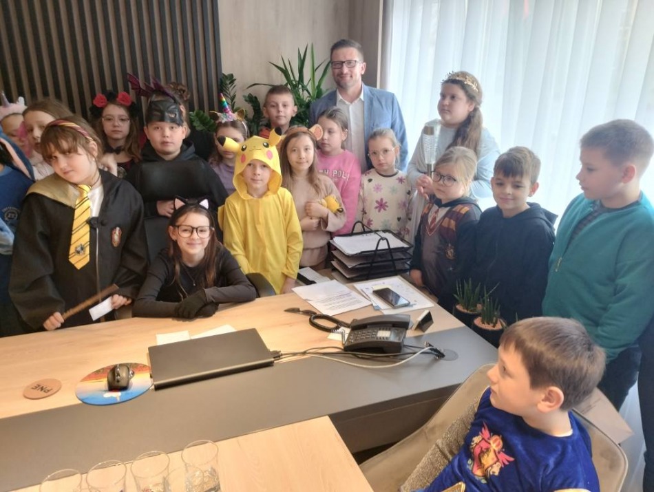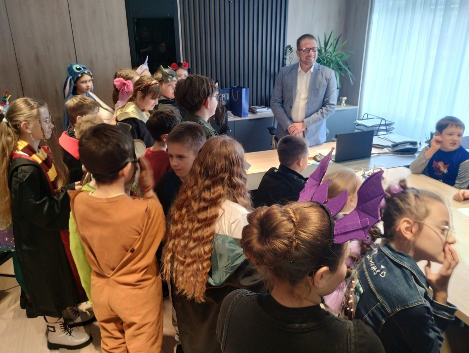W bajkowych nastrojach odwiedziliśmy Urząd Miasta w Radziejowie, gdzie spotkaliśmy się z Panem Burmistrzem Burmistrz Miasta Radziejów Krzysztof Wolański oraz pracownikami urzędu. Uczniowie z Miejski Zespół Szkół w Radziejowie przygotowali dla dorosłych bajkowe zagadki – okazało się, że wszyscy świetnie znają bajki i odpowiadali wręcz śpiewająco!