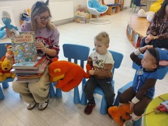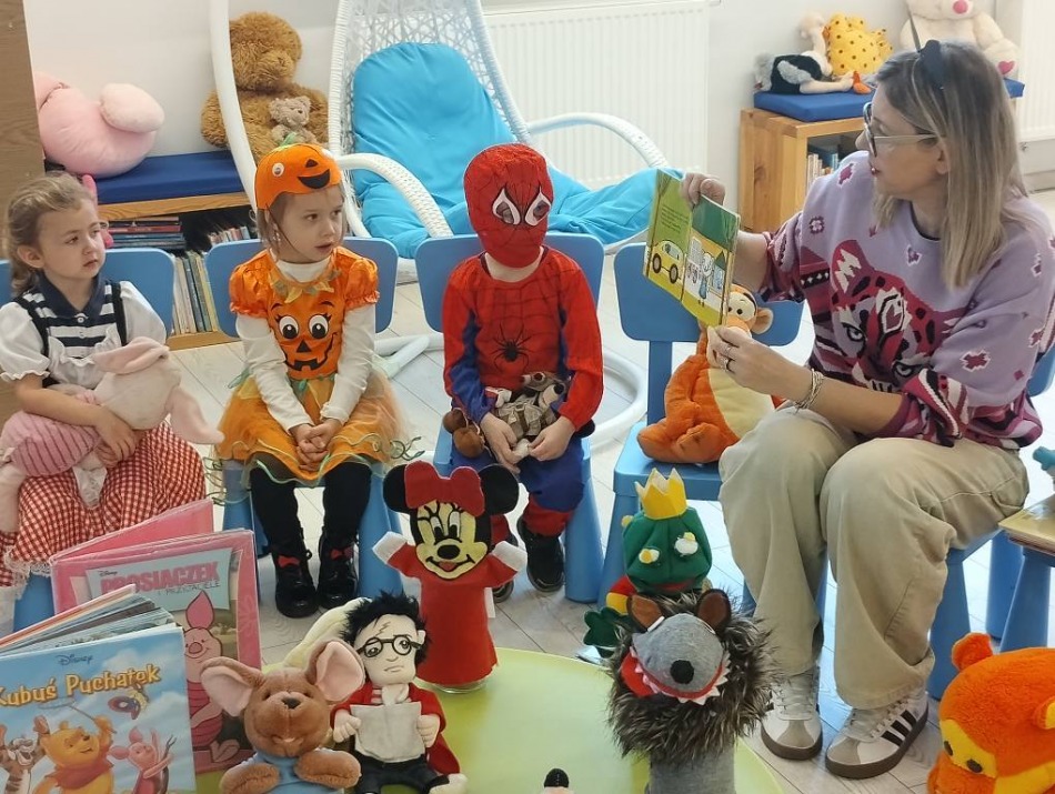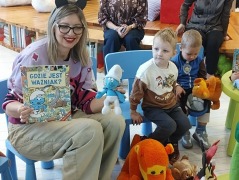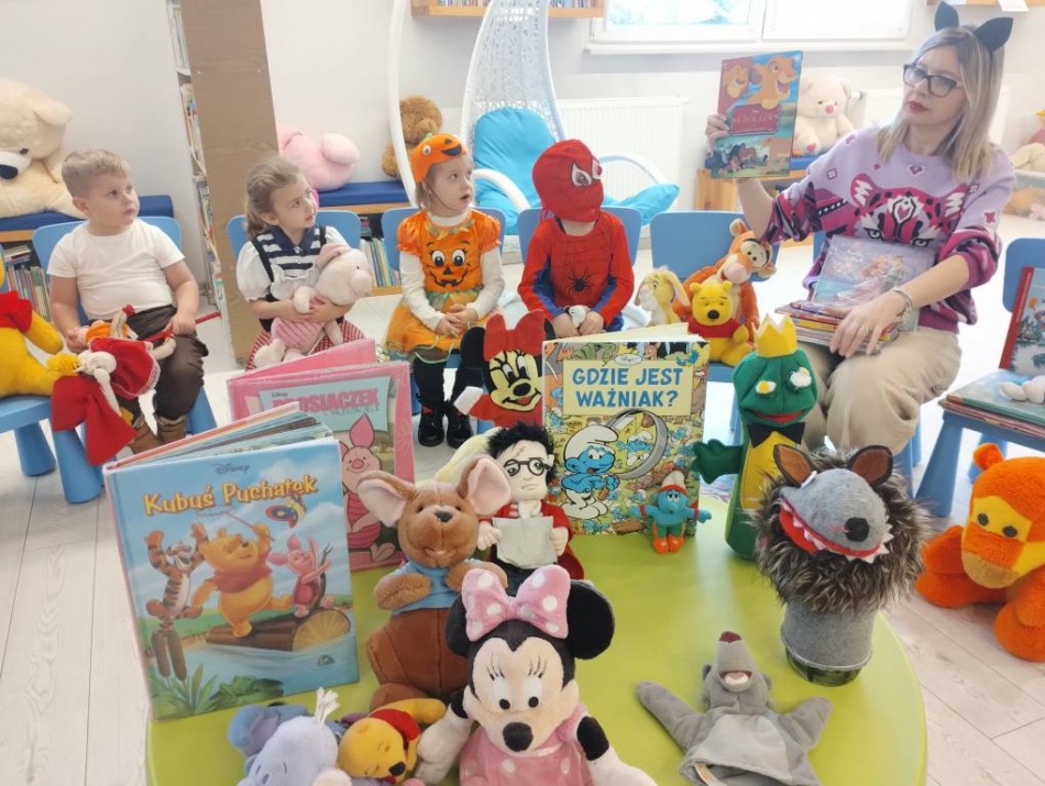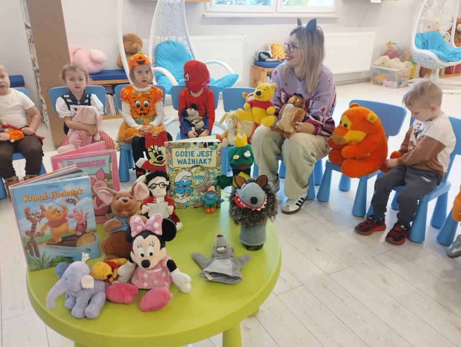 Wspólnie wysłuchaliśmy bajek o przygodach Kici Koci i Świnki Peppy, a potem rozmawialiśmy o innych bohaterach z bajek, które dzieci tak bardzo kochają.