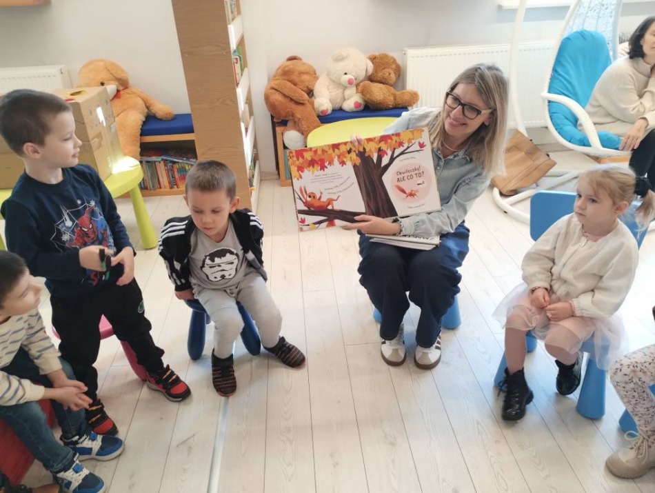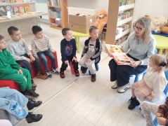 Dzieci wysłuchały głośnego czytania bajek, rozmawiały o ulubionych książkach i bajkowych bohaterach, a także wzięły udział w pogadance o tym, jak dbać o książki. Nie zabrakło również zagadek i dobrej zabawy.
