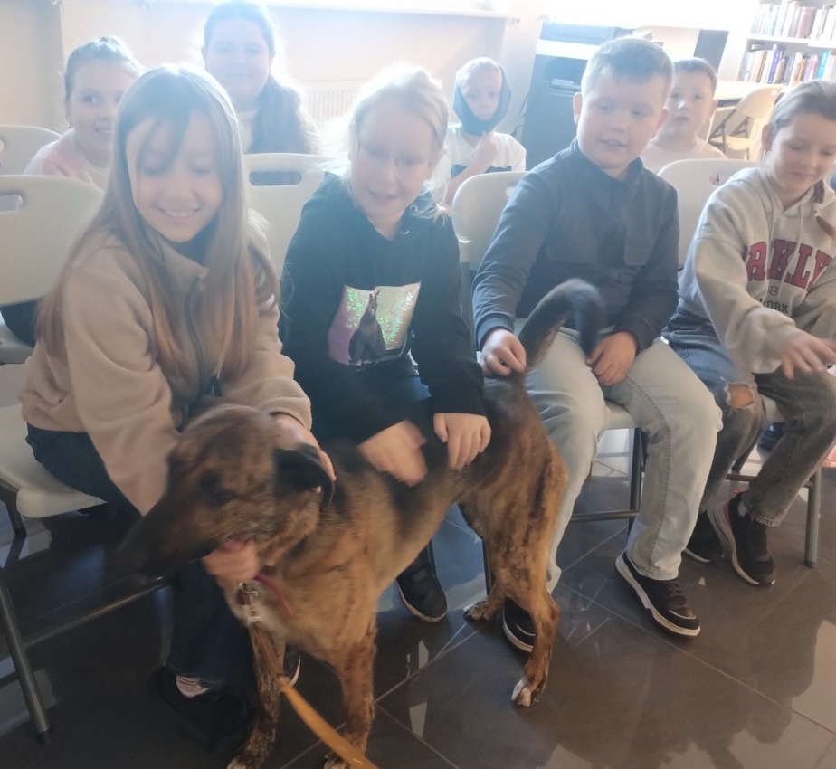 Z tej okazji w naszej bibliotece odbyło się wyjątkowe spotkanie z przedstawicielkami Towarzystwa Opieki nad Zwierzętami Oddział w Radziejowie. Odwiedziły nas panie, które w ciekawy sposób opowiedziały o "języku" psów i kotów – jak rozumieć ich zachowania, sygnały i potrzeby.