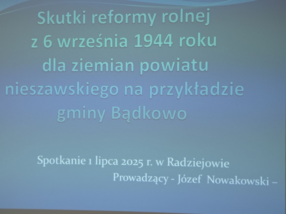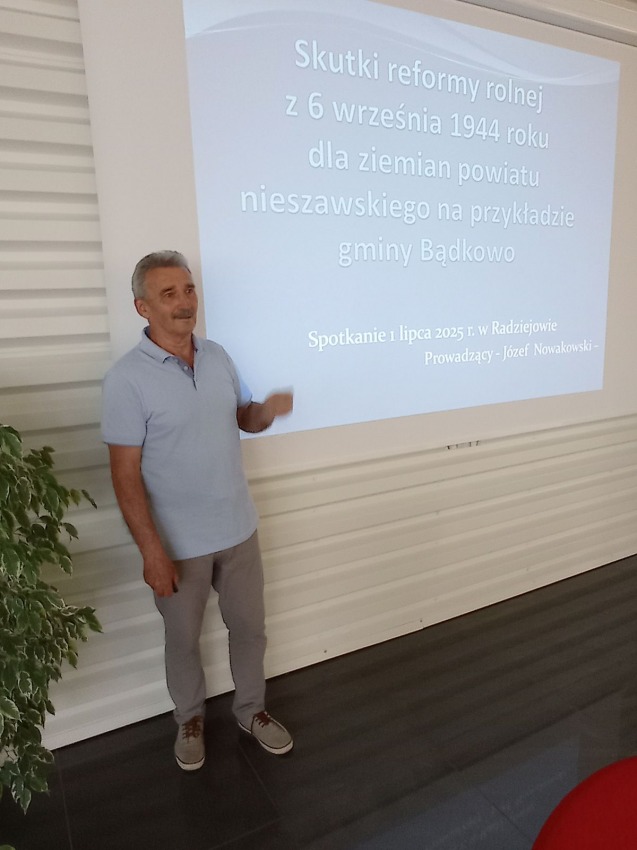 01.072025Wykład Józefa Nowakowskiegopt. „Skutki reformy rolnej z 6 września 1944 roku dla ziemian powiatu nieszawskiego na przykładzie gminy Bądkowo”. Wykład dla członków Polskiego Towarzystwa Historycznego - koło Radziejów.