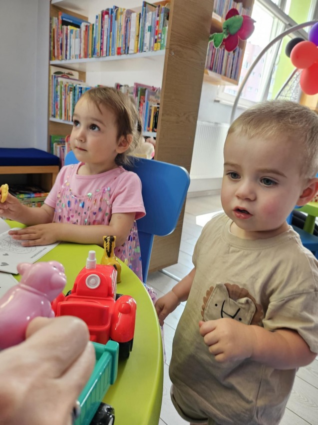 W każdą środę nasza biblioteka wypełnia się radością i śmiechem najmłodszych! Podczas spotkań dzieci mają okazję do wspólnej zabawy, oglądania książeczek i odkrywania świata książek, a mamy – do spokojnej rozmowy, dzielenia się doświadczeniami i wzajemnego wsparcia.