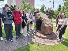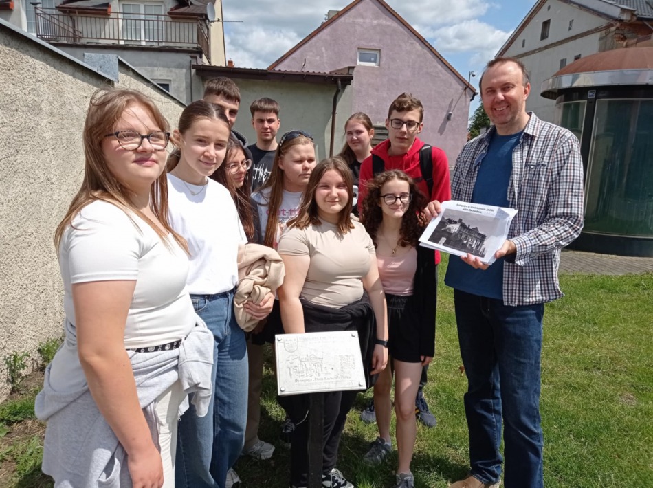 śladami ciekawych, radziejowskich historii, wyruszyłem z uczniami Zespołu Szkół Rolniczych Centrum Kształcenia Ustawicznego w Przemystce. Skarb ukryty w ścianie, palenie czarownic, zamek radziejowski, tajemnicze napisy i znaki sprzed kilkuset lat wydrapane na murze kościoła farnego to tylko początek opowieści, a dalej było jeszcze ciekawiej. Bibliotekarz, historyk, poszukiwacz i regionalista Krzysztof Wątrobicz – zapraszam kolejnych uczniów z radziejowskich i okolicznych szkół do poznawania historii Radziejowa w fajny, przystępny sposób. Spacerki odbywają się w ramach promocji księgozbioru regionalnego, radziejowskiej BIBLIOTEKI.