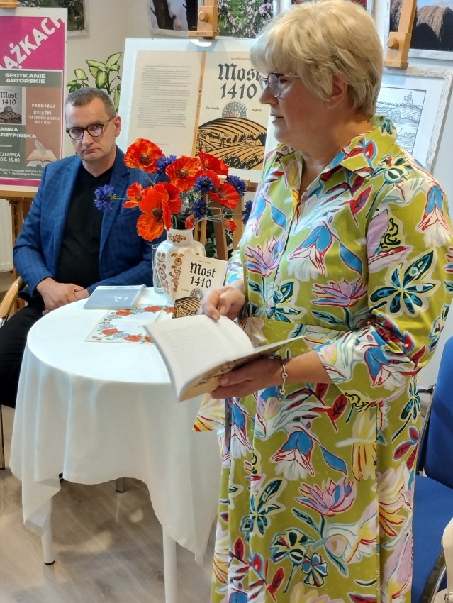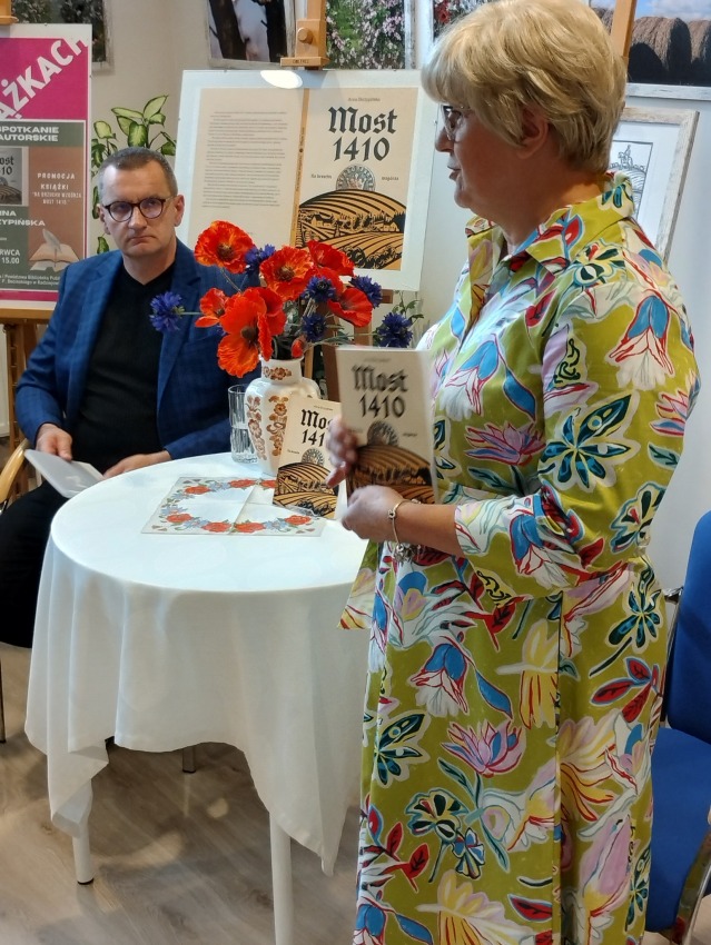 Dzisiaj odbyło się wyjątkowe spotkanie autorskie z panią Anną Skrzypińską zorganizowane z okazji promocji jej książki pt. "Na brzuchu wzgórza. Most 1410". Jest to opowieść o średniowiecznym Radziejowie. Autorka opowiadała o kulisach powstawania książki, procesie twórczym, a także chętnie odpowiadała na pytania publiczności. Nie zabrakło również fragmentów lektury przeczytanych na żywo oraz możliwości zdobycia autografu. Było to niezapomniane popołudnie pełne ciekawych rozmów i literackiej atmosfery.