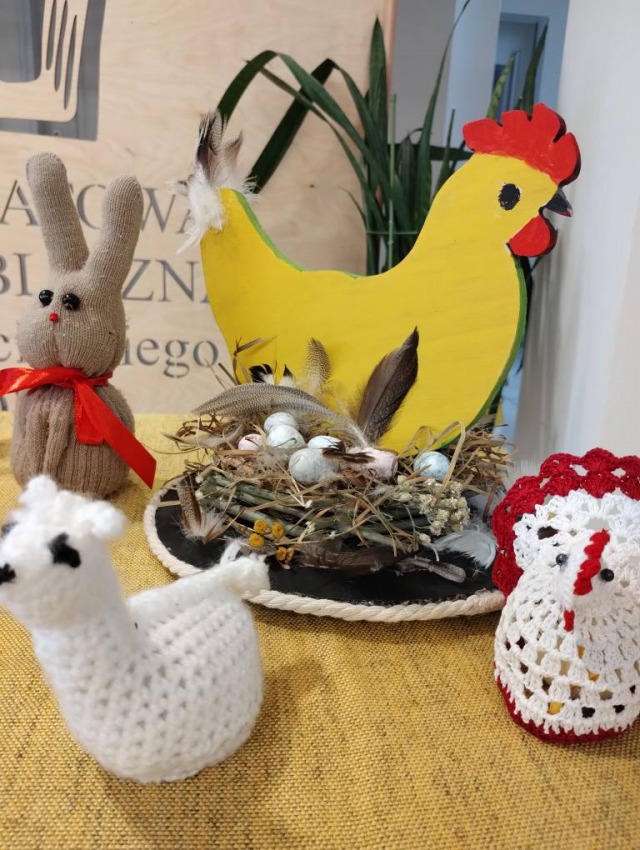 10.042025Wielkanoc tuż, tuż!Zapraszamy na podziwianie świątecznej wystawy wykonanej przez seniorów z "Klub Seniora "U Floriana". Można zobaczyć zajączki, pisanki, kurczaczki i wiele innych dekoracji na wielkanocny stół. Jest to prawdziwa uczta dla oczu! Serdecznie zapraszamy.