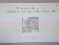 20.032025Czym jest sztuczna inteligencja?Na ten temat odbył się wykład dla Słuchaczy Uniwersytetu Trzeciego Wieku. Wykład wygłosił - Łukasz Marcinkowski i Agnieszka Borska.