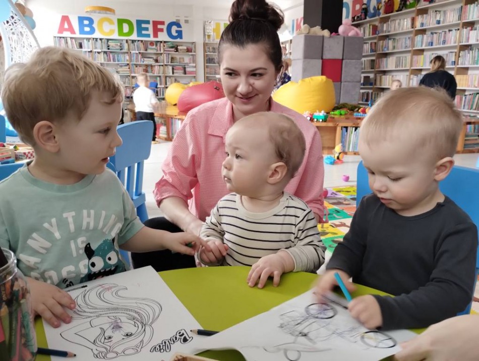 Maluszki w bibliotece.