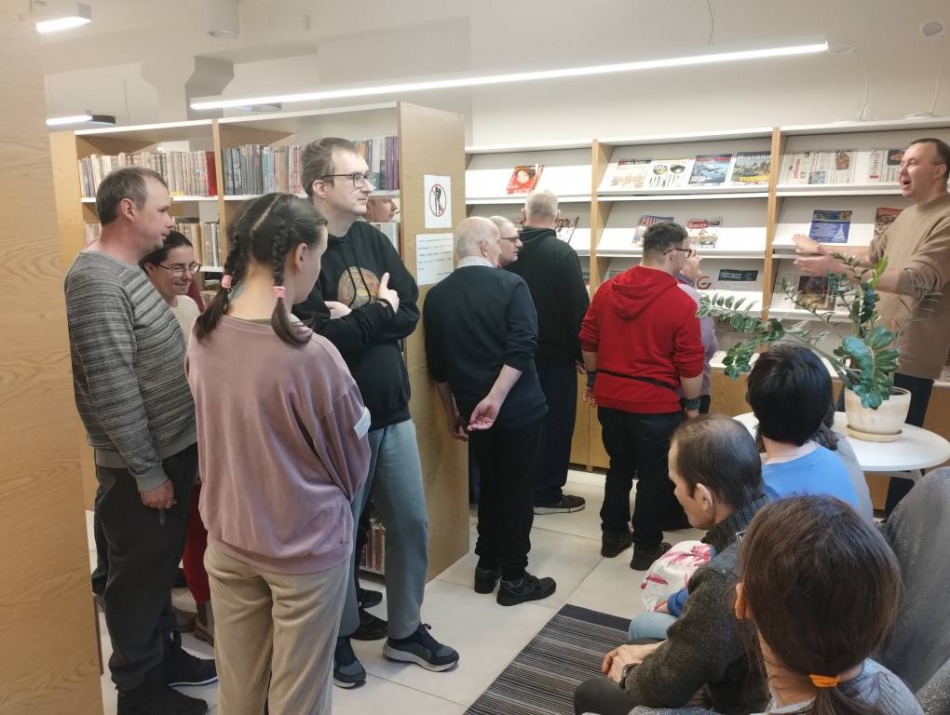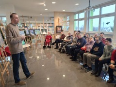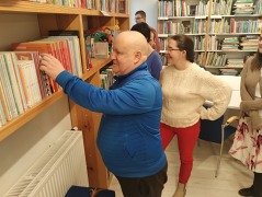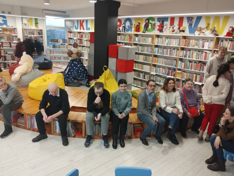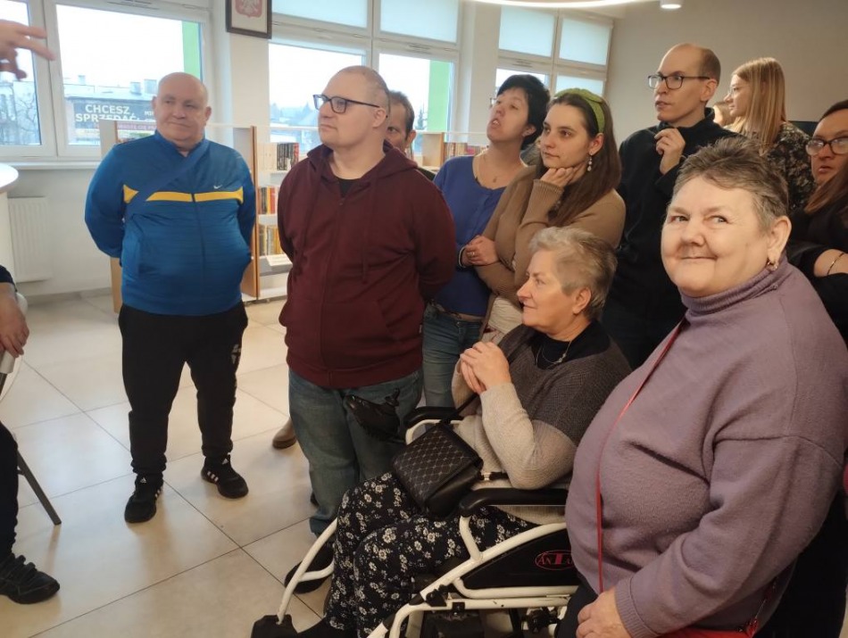 z podopiecznymi Środowiskowego Domu Samopomocy w Radziejowie. Było zwiedzanie biblioteki, zapoznanie się z zasadami i możliwościami korzystania z księgozbioru oraz ofertą kulturalną biblioteki. Uczestnicy mieli możliwość obejrzenia wystawy malarstwa pani Urszuli Szymkowiak. Usłyszeli również ciekawe radziejowskie historie i obejrzeli stałą ekspozycję zdjęć "Panoramy, mapy, plany, zdjęcia i szkice dawnego Radziejowa" Biblioteka bardzo się spodobała. Po wizycie mamy nowych czytelników.