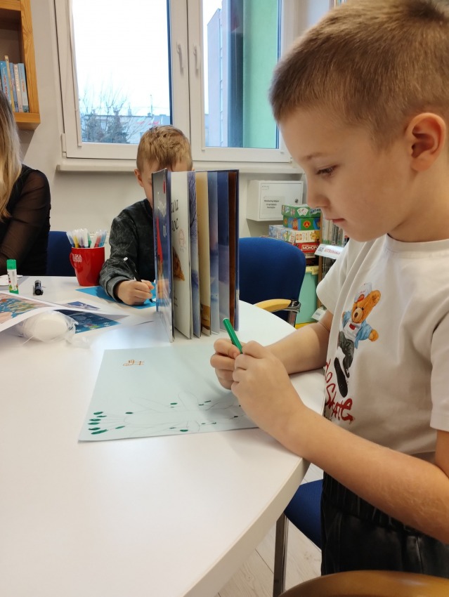 23.012025Kolejne dzień ferii w bibliotece.Jest to doskonały czas na czytanie oraz zajęcia plastyczne.