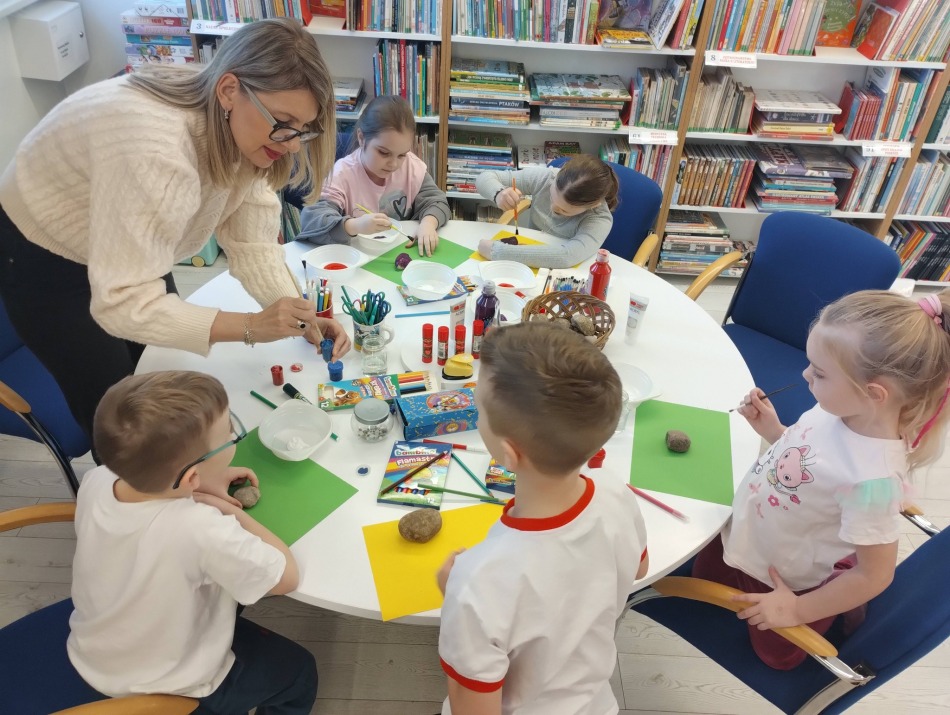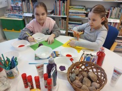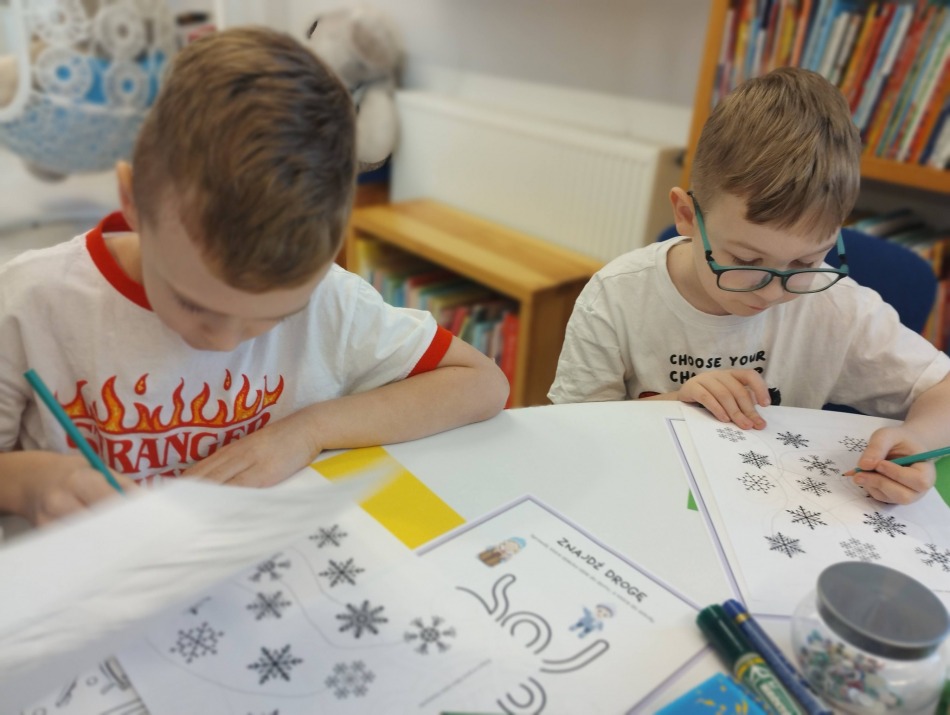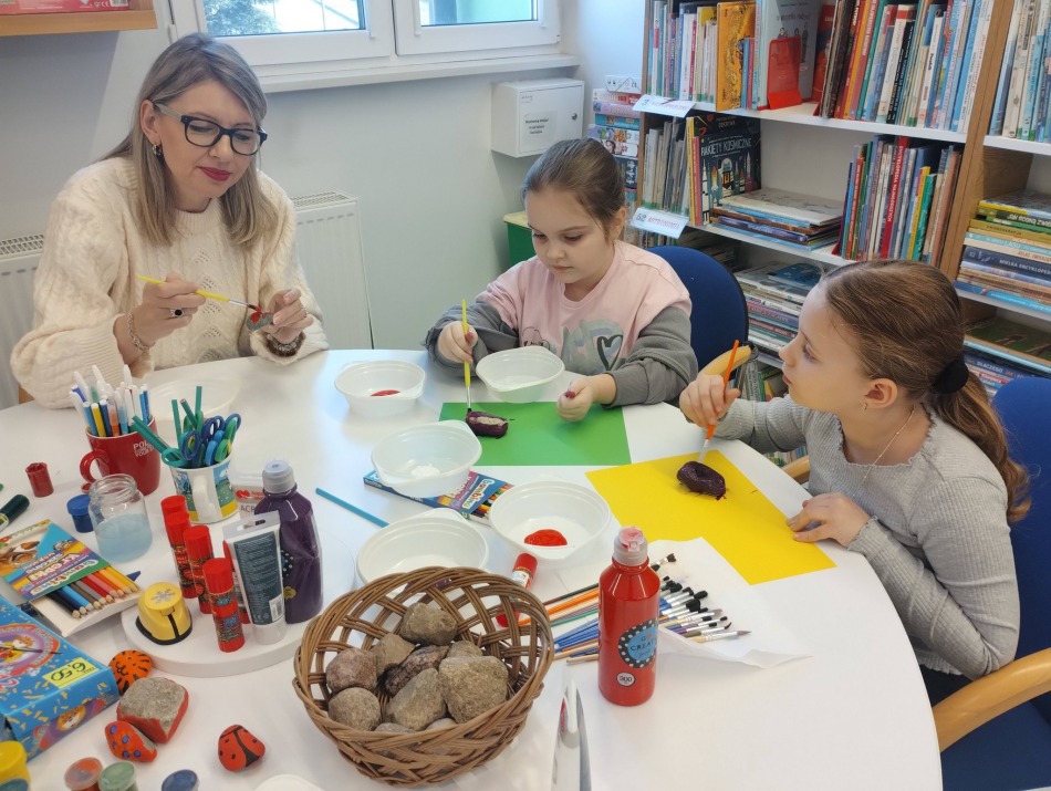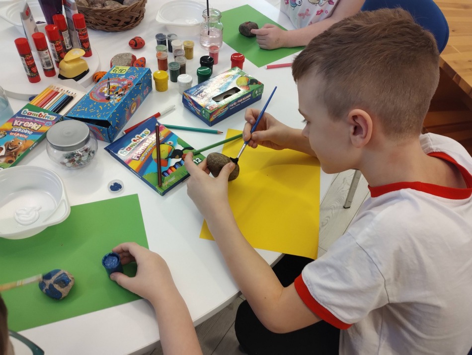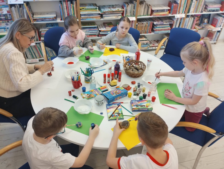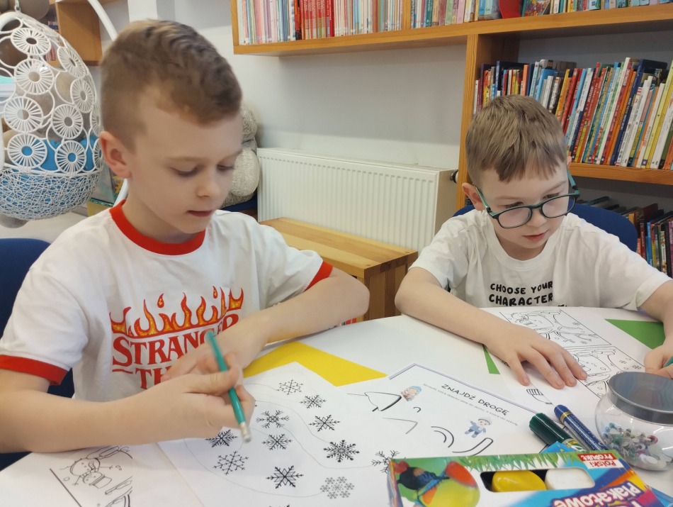 Nie zabrakło także zimowych krzyżówek i łamigłówek, bajkowych kalamburów oraz kreatywnego malowania kamyczków. Było świetnie, wesoło i bardzo twórczo.
