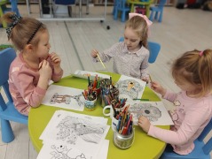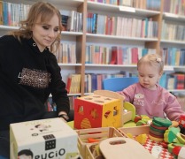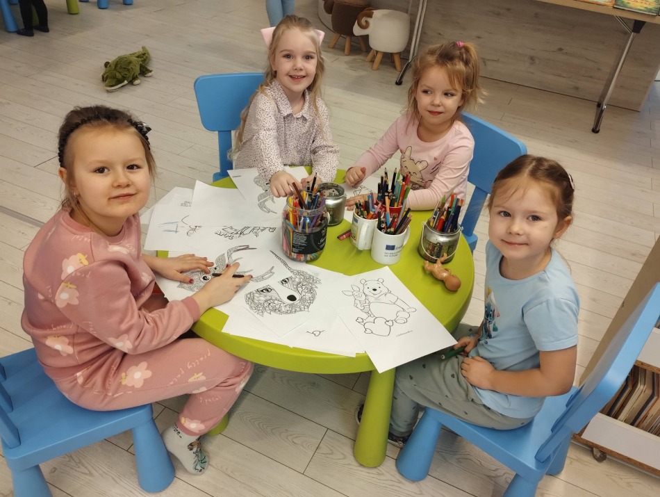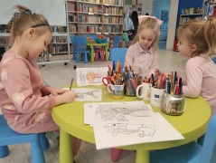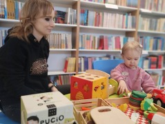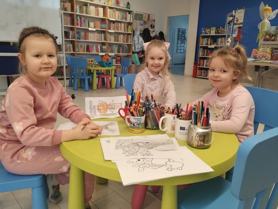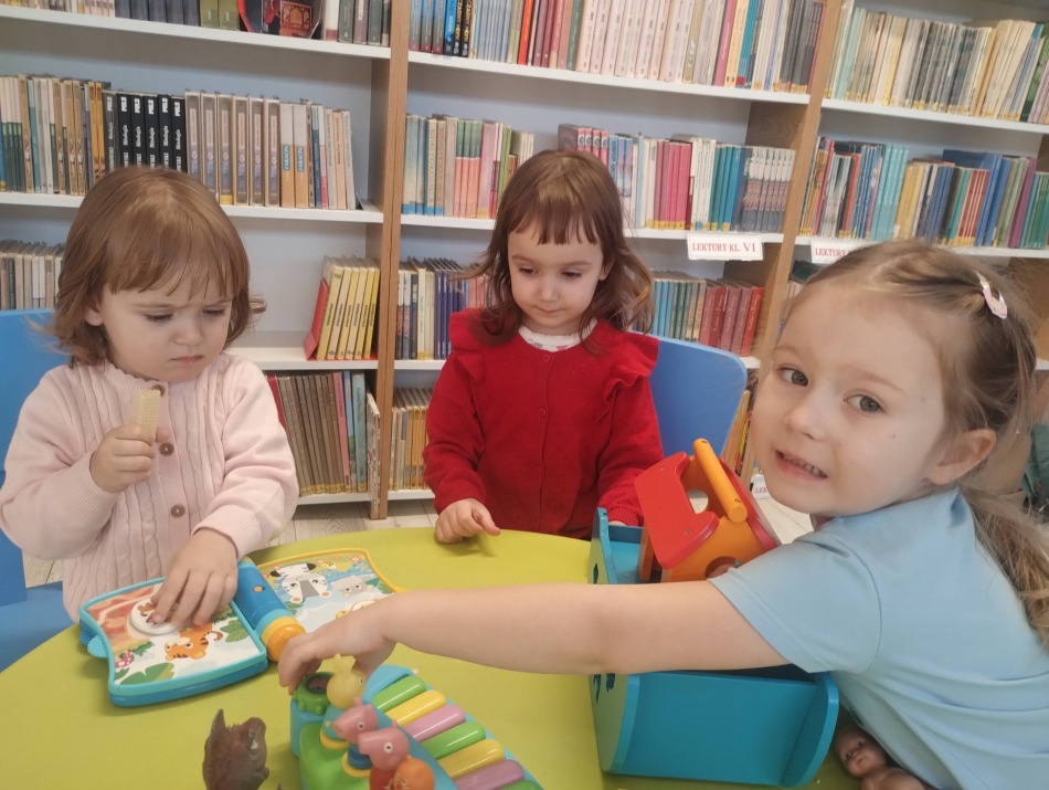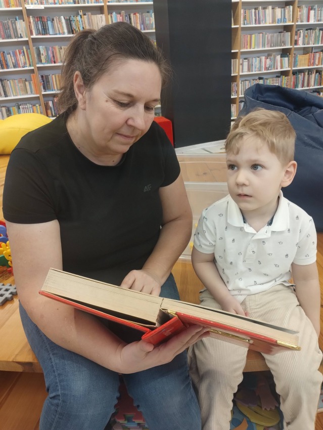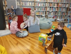 W każdą środę biblioteka wypełnia się dziecięcym śmiechem i radosnym gwarem. Odwiedzają nas mamusie wraz ze swoimi pociechami.