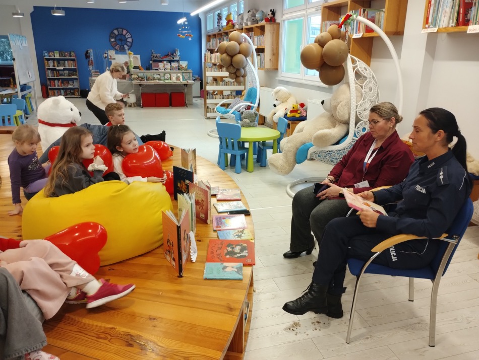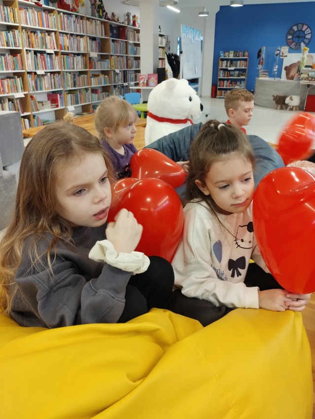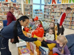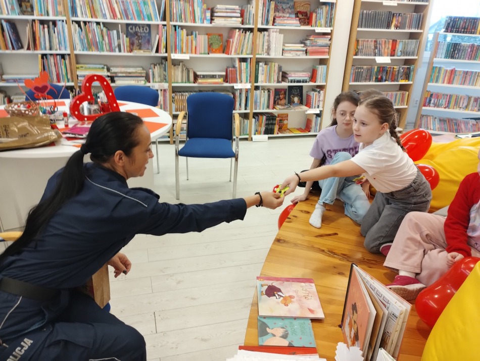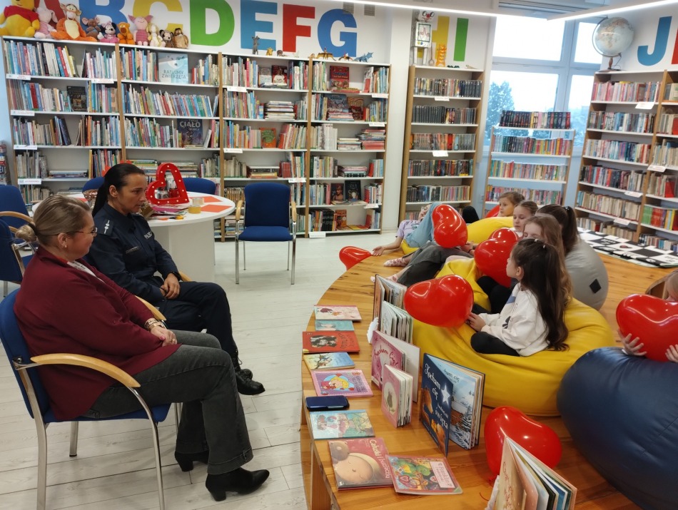 Następnie pani policjantka przeczytała dzieciom opowieść wybraną przez samych uczestników – a była to historia o miłości. To idealnie wprowadziło nas w walentynkowy nastrój! Walentynki tuż, tuż !!!