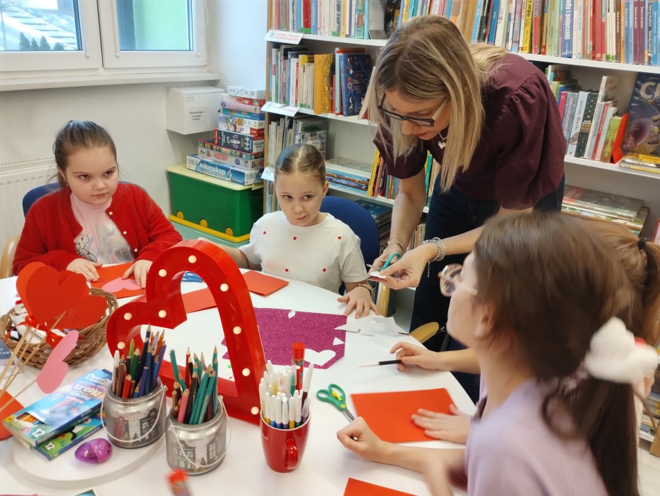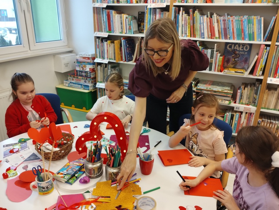 Dzieci z ogromnym zaangażowaniem tworzyły kartki walentynkowe dla przyjaciół, rodziców i ulubionych kolegów oraz koleżanek.