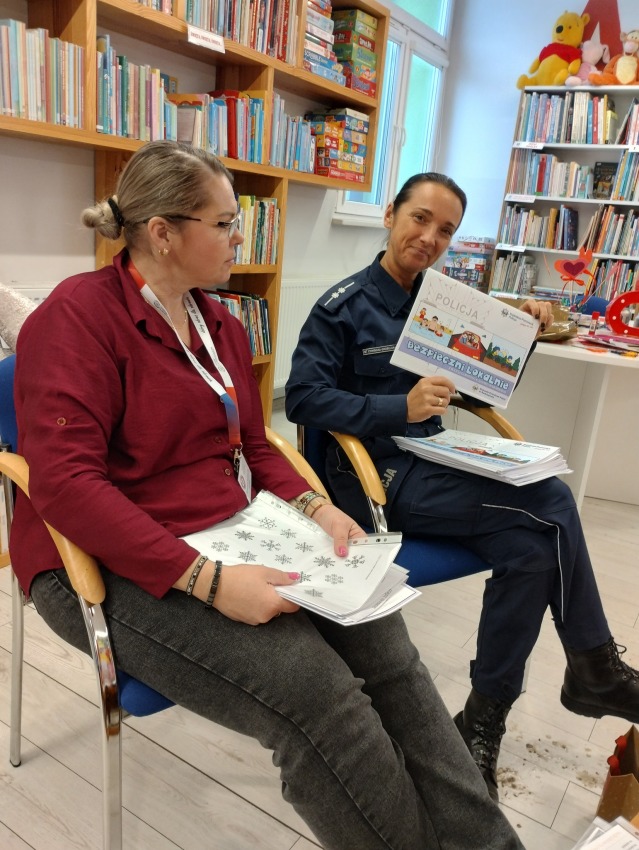 Dzieci dowiedziały się, jak zachowywać się, aby ferie zimowe były nie tylko udane, ale przede wszystkim bezpieczne. Otrzymały odblaski, aby zwiększyć swoje bezpieczeństwo na drodze oraz kolorowanki, łamigłówki związane z bezpieczeństwem.