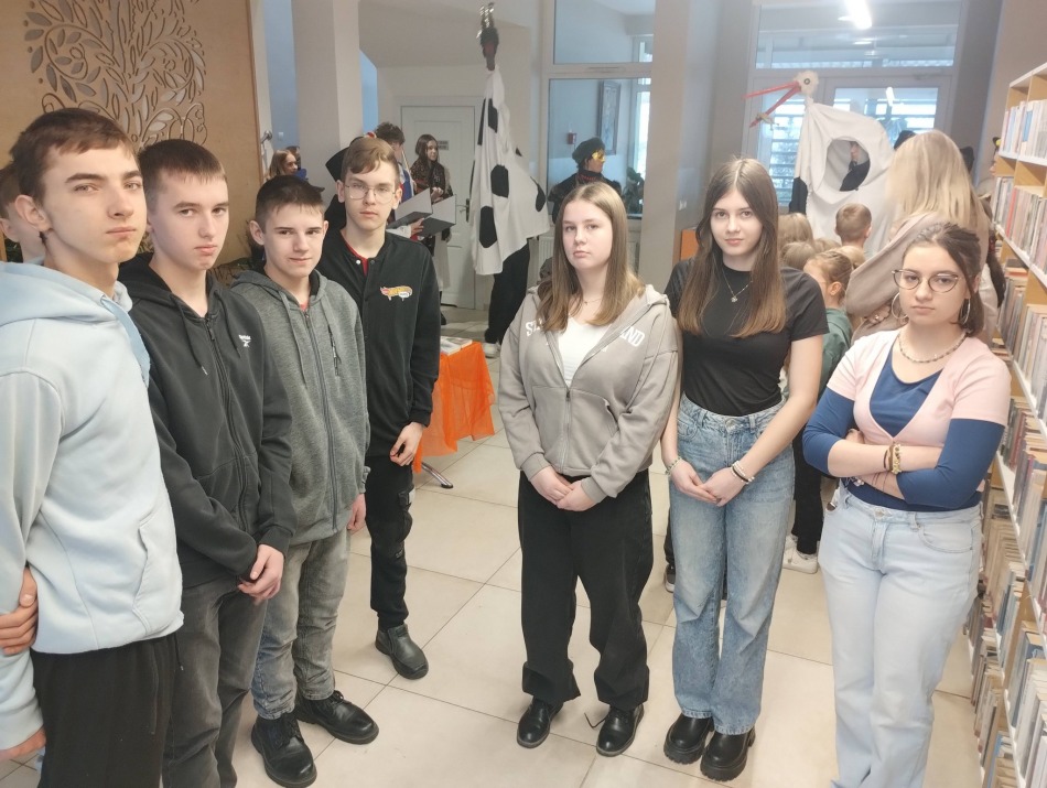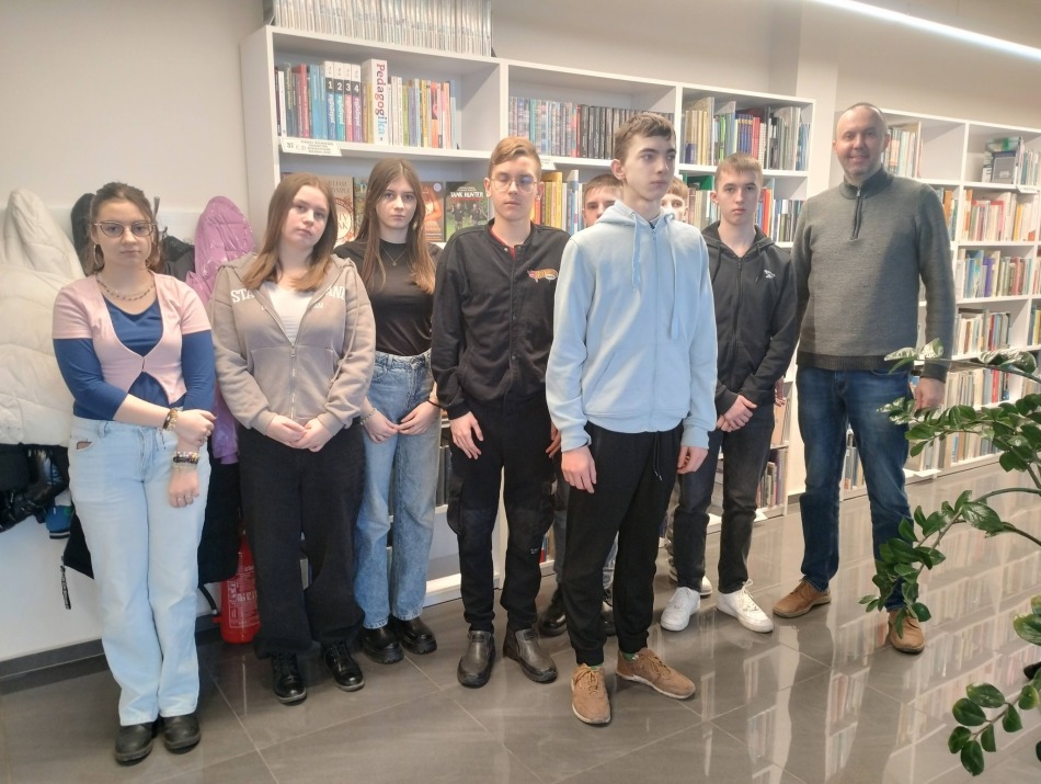 Uczniowie klasy VIII ze Szkoły Podstawowej w Dębołęce spędzili DZIEŃ KUJAWSKI w naszej bibliotece.