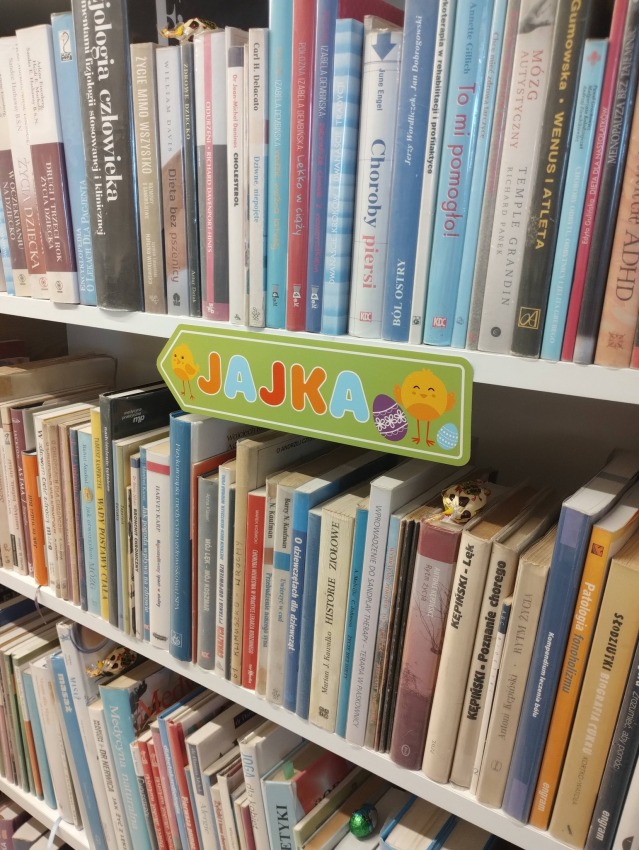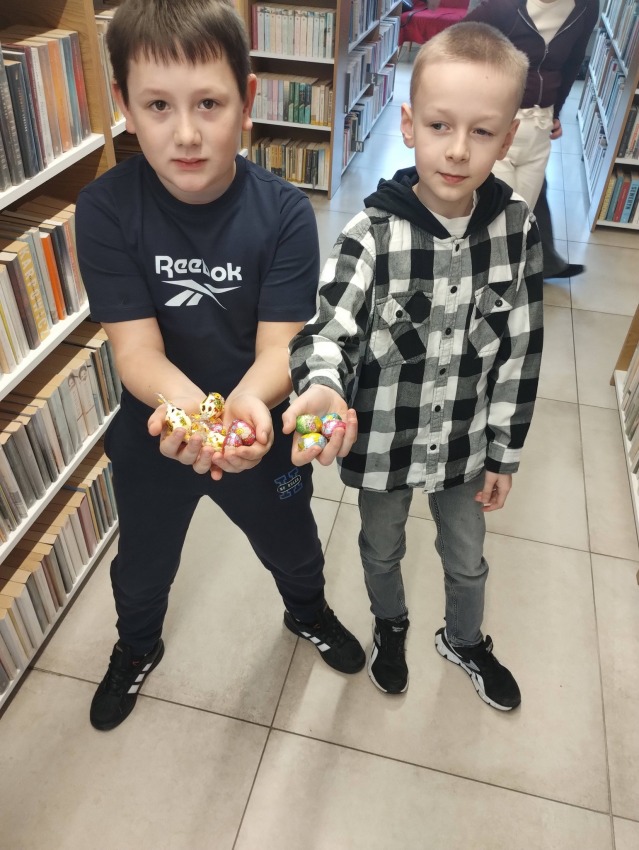 Na zaproszenie uczniów wzięliśmy udział w tym wyjątkowym, świątecznym spotkaniu. Nie zabrakło radości, uśmiechu i dobrej zabawy – a jednym z najciekawszych momentów było szukanie jajek ukrytych wśród regałów książkowych.