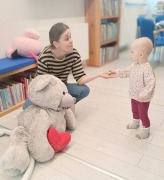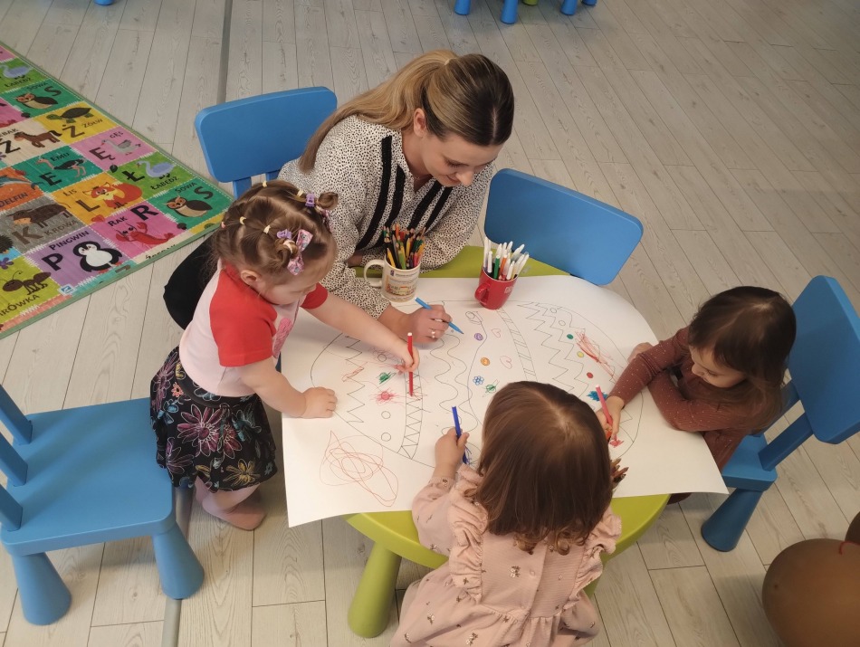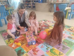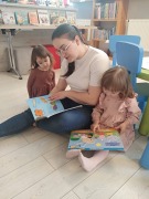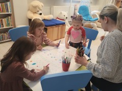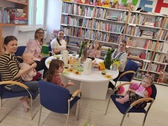 Wspólne czytanie, wielkie poszukiwania „Zajączka” ukrytego między książkami ... łatwo nie było! Kolorowe dekorowanie wielkanocnego jaja i oczywiście dużo, dużo świetnej zabawy! A mamy? Też miały swój czas – na pogaduchy i chwilę oddechu przy kawie.