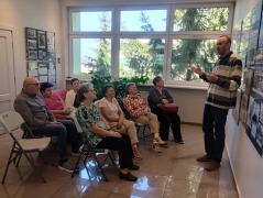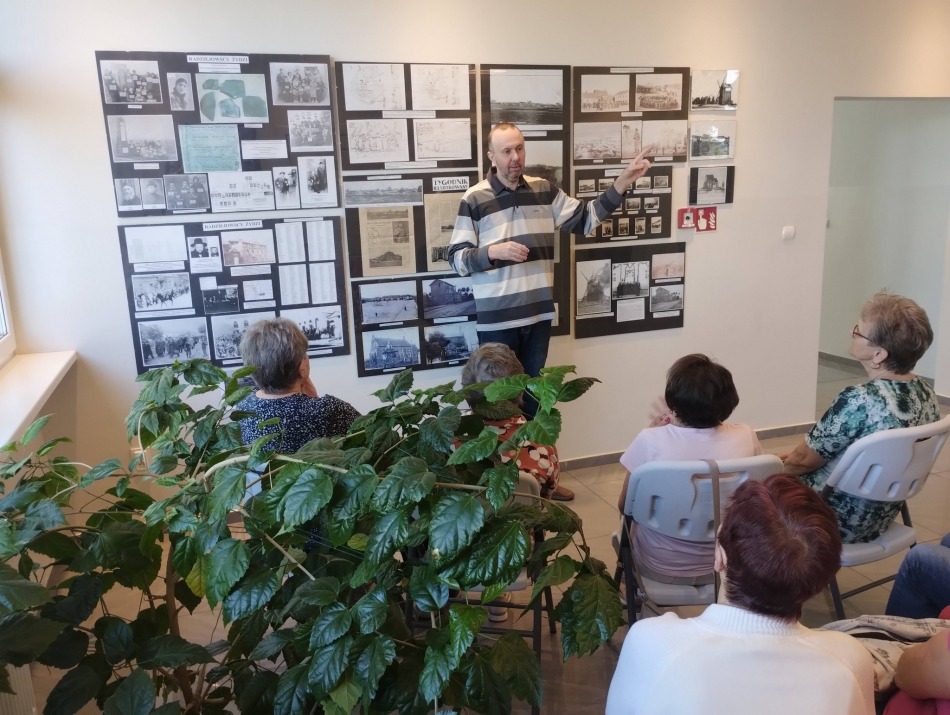 Seniorzy obejrzeli również galerię archiwalnych zdjęć, dzięki którym mogli lepiej wyobrazić sobie, jak wyglądało życie Żydów w Radziejowie – gdzie mieszkali, czym się zajmowali oraz jaką rolę odgrywali w lokalnej społeczności.